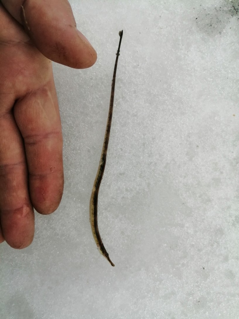 В какой-то момент на лед выбросило необычное существо, похожее на иглу. Такая находка озадачила рыбака, после чего тот решил узнать у местных рыбаков, что же ему попалось.
